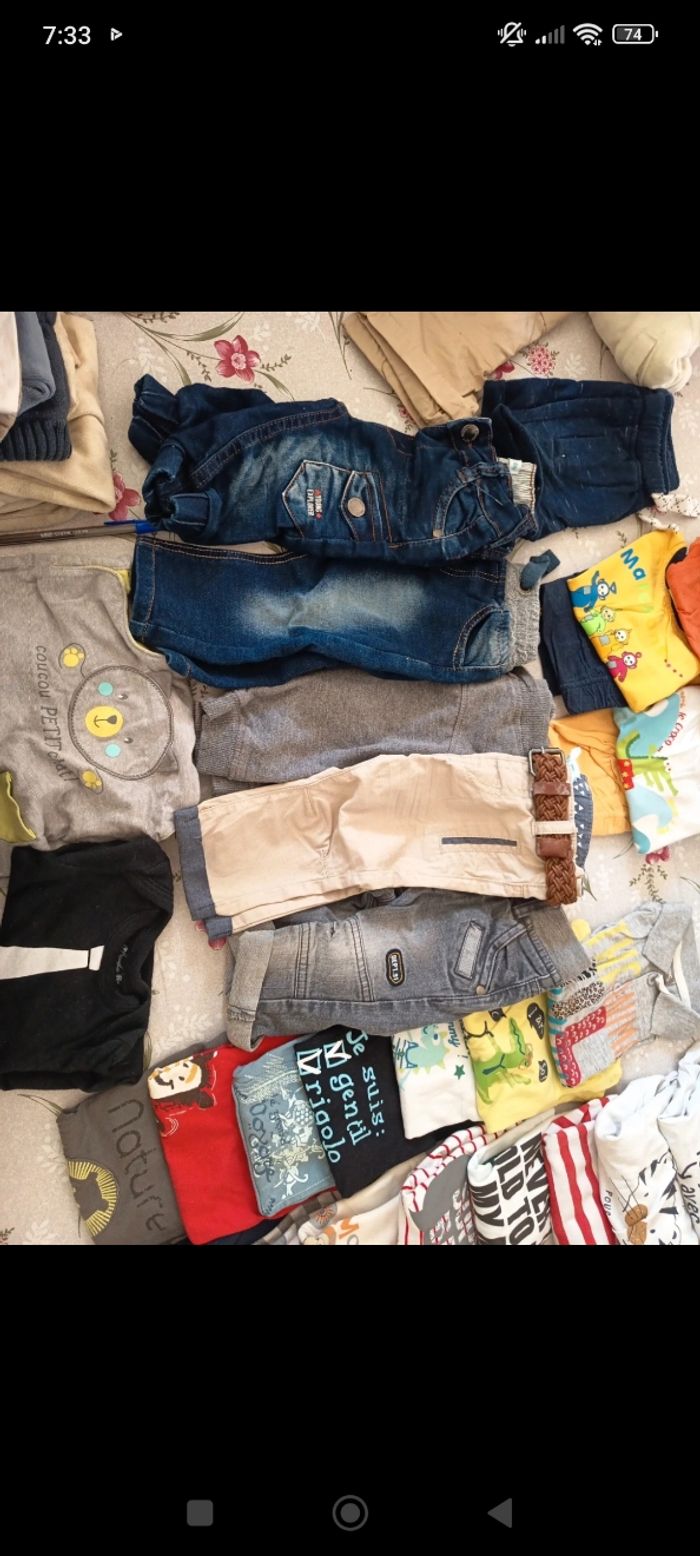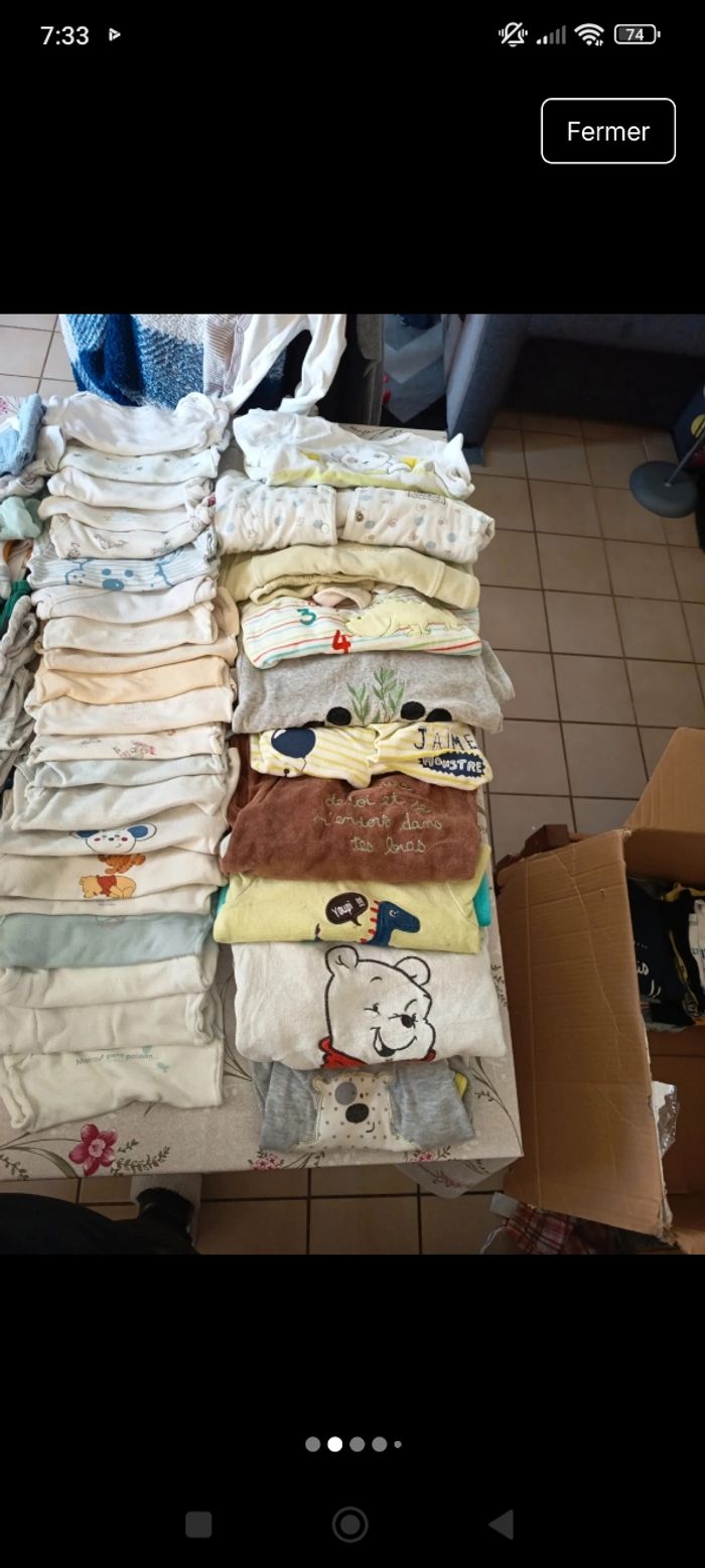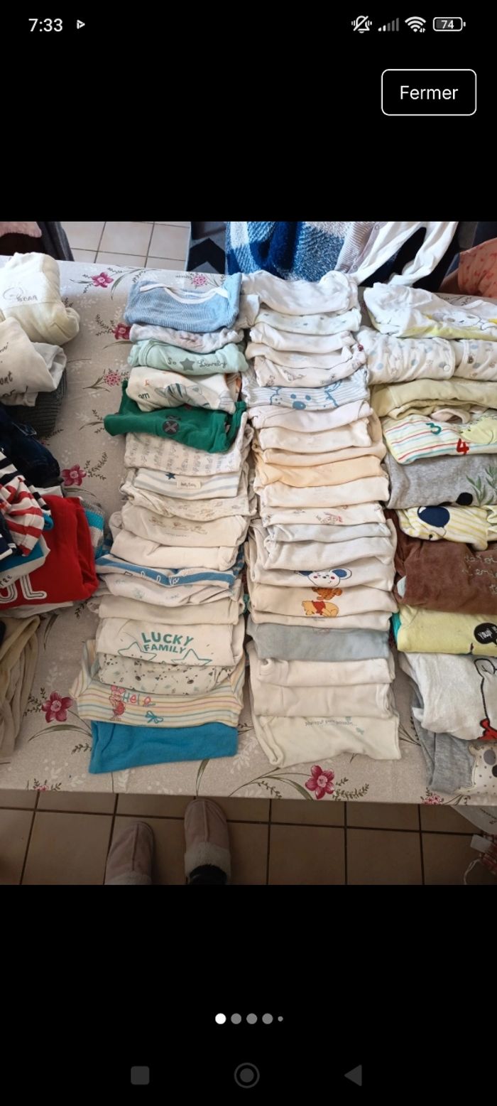 38bodie 4jeans 1joggins 2short 4ensemble 10haut manche longue 7tee shirt 2combi habiller 2veste a fermeture 1chemise 10pyjama Tout en parfaite état envoi rapide je jour même de commande