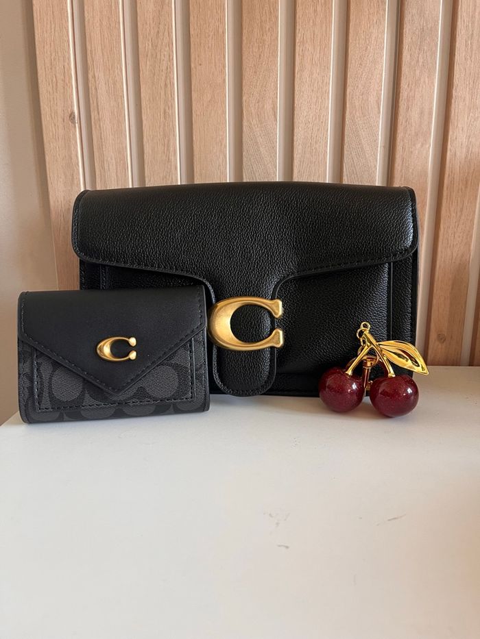 Sac à main type coach Avec porte feuille et porte clef cerise Neuf