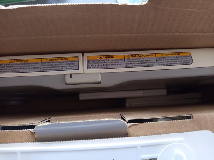 Balance pour Nintendo Wii avec sa boîte. La boîte est en état correct, déchirée sur le dessus. Vendue avec Wii fit plus. La balance est en état correct avec quelques "taches et rayures" d'utilisation. Ensemble légèrement "jaunie" et "tachée". La wii board fonctionne sans soucis. Le jeu Wii fit plus multi langues (5) dont le Français (Es,An,De,It,Fr) L'ensemble fonctionne sans soucis. Balance board.
