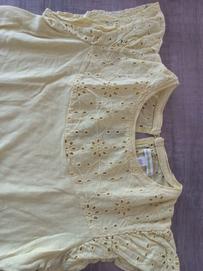 Tee shirt manches courtes Verbaudet Jaune pâle avec dentelles 12 ans