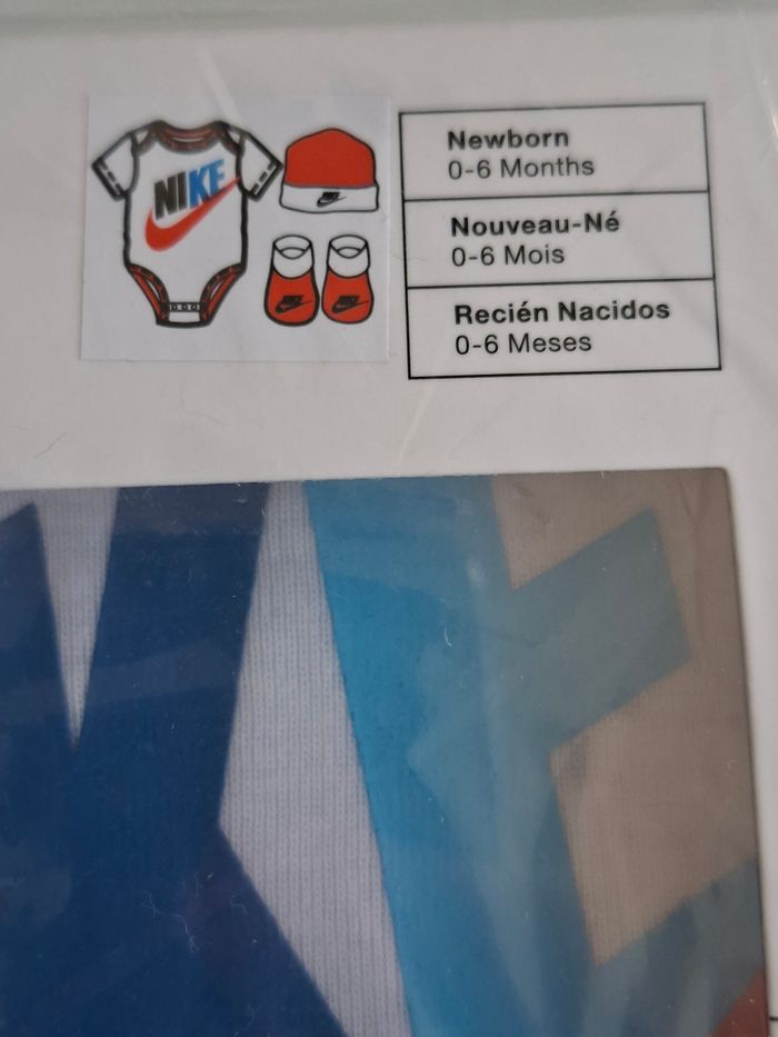 📍 Coffret Nike body + bonnet + chausson taille 0-6 mois Le Coffret est neuf, toujours sous emballage Prix négociable ❓️ N'hésitez pas si besoin 🚀 Envoie très rapide et soigné
