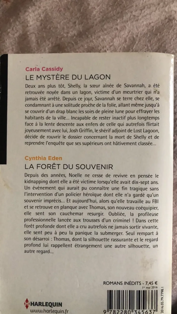 Plongez dans l’univers intense de la collection Harlequin Black Rose, mêlant romance, mystère et suspense. Ce livre réunit deux romans captivants : Le Mystère du Lagon – Carla Cassidy La Forêt du Souvenir – Cynthia Eden Intrigues haletantes, enquêtes sombres, secrets enfouis et histoires d’amour fortes au cœur du danger. Idéal pour les amateurs de thrillers romantiques et de suspense émotionnel