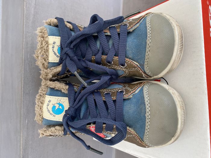 Chaussures montantes enfant Marron Bleu Pointure 23 Très facile à enfiler grâce à la fermeture éclair sur le côté (les lacets servent à faire jolis) molletonnées pour tenir bien chaud Avant renforcé