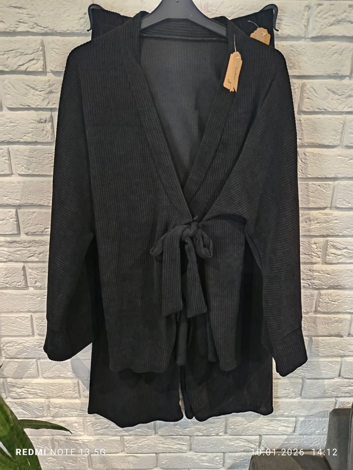 Taille : xl • État : Neuf, jamais porté avec étiquettes • Couleur : noir • Matière : agréable à porter • Style : Parfait pour la ville, le travail maison ou les sorties Envoi rapide 📦 Magnifique ensemble deux-pièces en matière velours côtelée stylé kimono idéal pour un look chic et confortable. Le haut ample met la silhouette en valeur, et le pantalon à coupe large apporte une allure élégante et moderne.