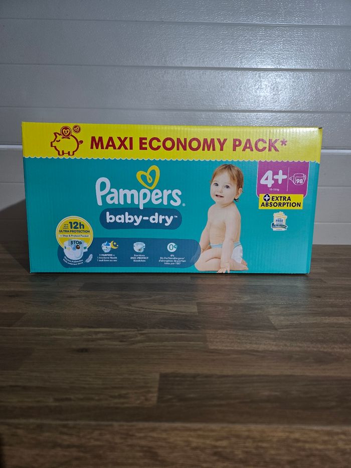 Pampers couches taille 4+ extra absorption 10-15kg  98 couches