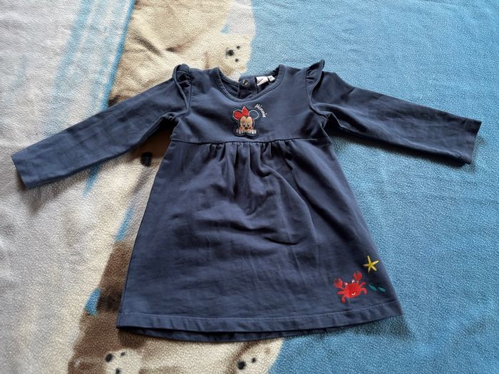 Robe manche longue Minnie avec 3 boutons pressions dans le dos. Taille 36 mois En très bon état. Juste le petit crabe un peu effacé (voir photo)