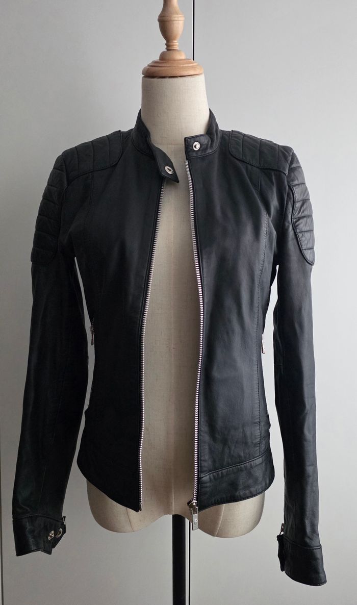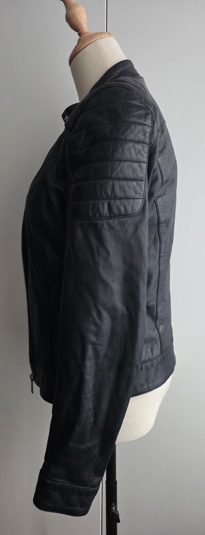 Veste en cuir de marque Goosecraft, taille S, % cuir. Couleur noir, poches, fermeture éclair. mesure épaule à épaule: 38cm Longueur: 56.5cm