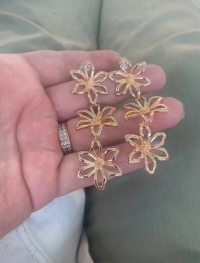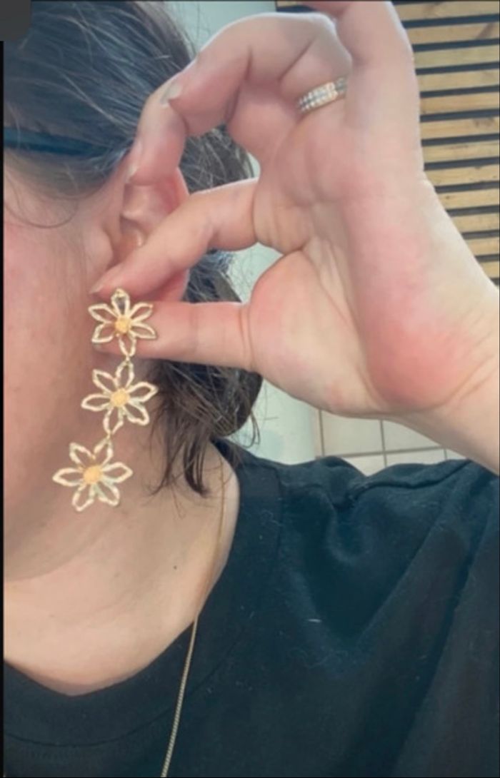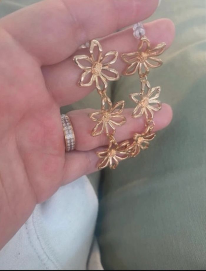 Boucles d’oreilles pendantes NEUVES forme de fleurs couleur doré - photo numéro 5