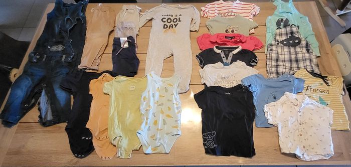 En trés bon état gros lot garçon printemps été de différentes marques ( kiabi , obaïbi, orchestra ... ) qui comprend 2 salopettes pantalons , 1 pantalon léger , 3 short, 4 bodies, 1 pyjama une piéce , 8 T shirt , 1 chemise ainsi que 2 salopettes short. N'hésitez pas à regarder mon dressing, une réduction peux être appliquée pour les achats en lot, Envoie rapide et soignée 😊☀️
