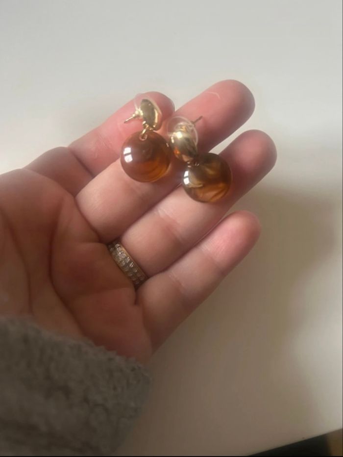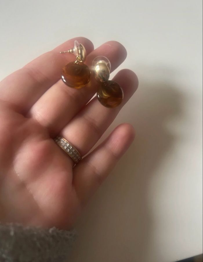 Petites boucles d’oreilles NEUVES pour femme de forme ronde couleurs ambre et doré - photo numéro 4
