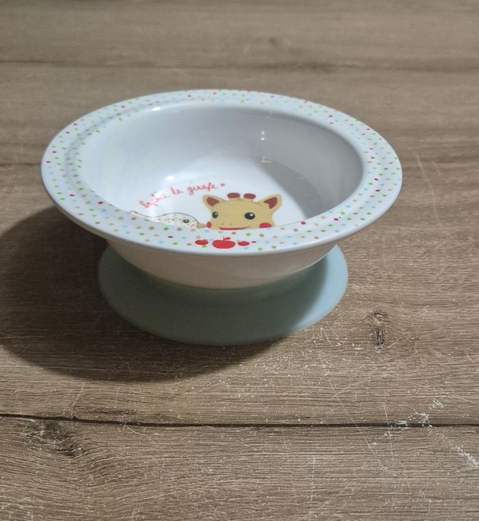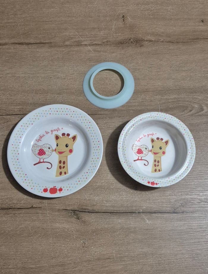 Lot incluant une assiette et un bol avec ventouse Sophie la girafe Très bon état