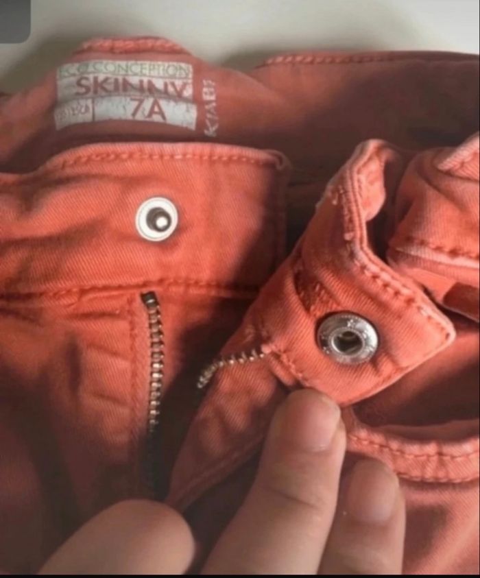 DRESSING PROPOSANT RÉDUCTIONS 💶🙂 Jean modèle skinny pour garçon. Avec bouton pression. La fermeture Éclair est en parfait état. Ceinture réglable à l’intérieur avec élastiques. Marque : Kiabi 100% coton Taille : 7 ans Couleur : Rouille / Terracotta (J’AI CHOISI rouge) ✨EN BON ÉTAT✨⬇️⬇️⬇️ ⚠️ N’a pas de trous. Le bas des jambes n’est pas déchiré. MAIS les genoux sont « grisés » d’où le PETIT PRIX ! 💶 💶 💶 Et encore, certaines Vinties (autres vendeuses) vendent plus cher des jeans en moins bon état que le mien. PETIT COLIS 📦 (au lieu de moyen 💶🤑) Prix : 1€50 Je dépose les colis 📦 le jour même ou le lendemain du paiement. 😉 N’hésitez pas à jeter un coup d’👀 à mes évaluations. 😊