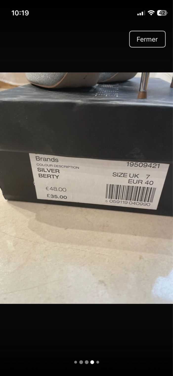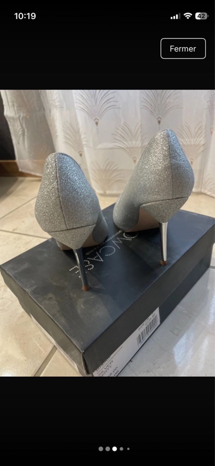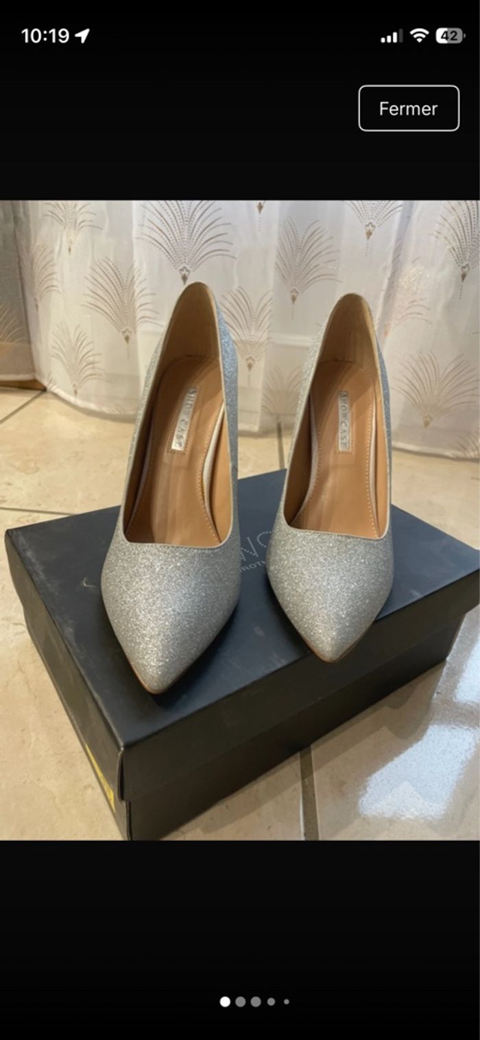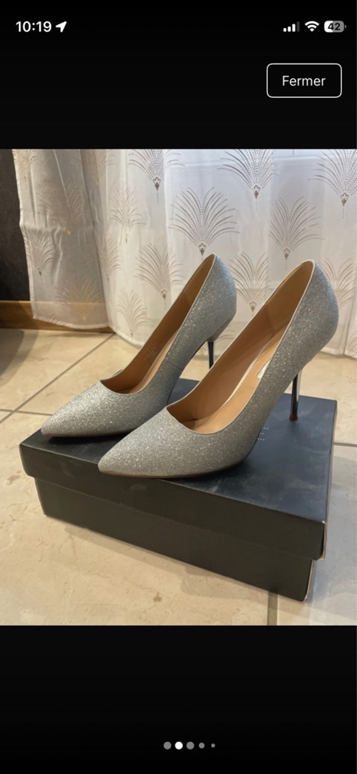 Vends talons aiguilles jamais portés Taille du talon 9 cm Pointure 40 Couleur argent brillant