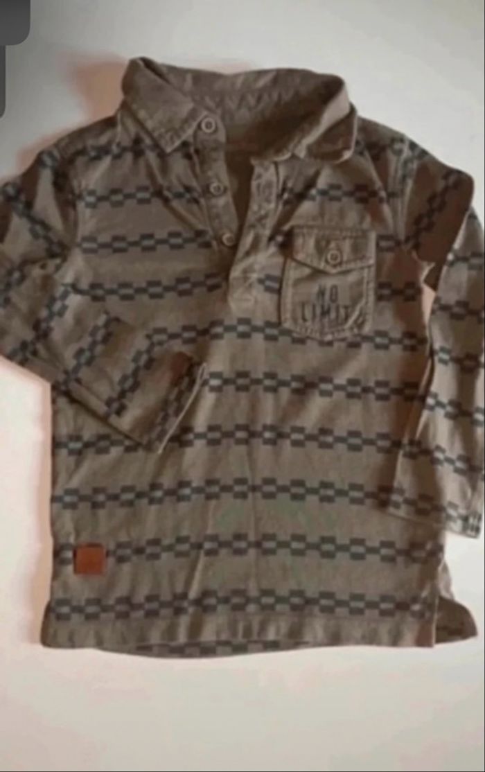 Polo manches longues garçon très bon état taille 4 ans couleur kaki - photo numéro 2