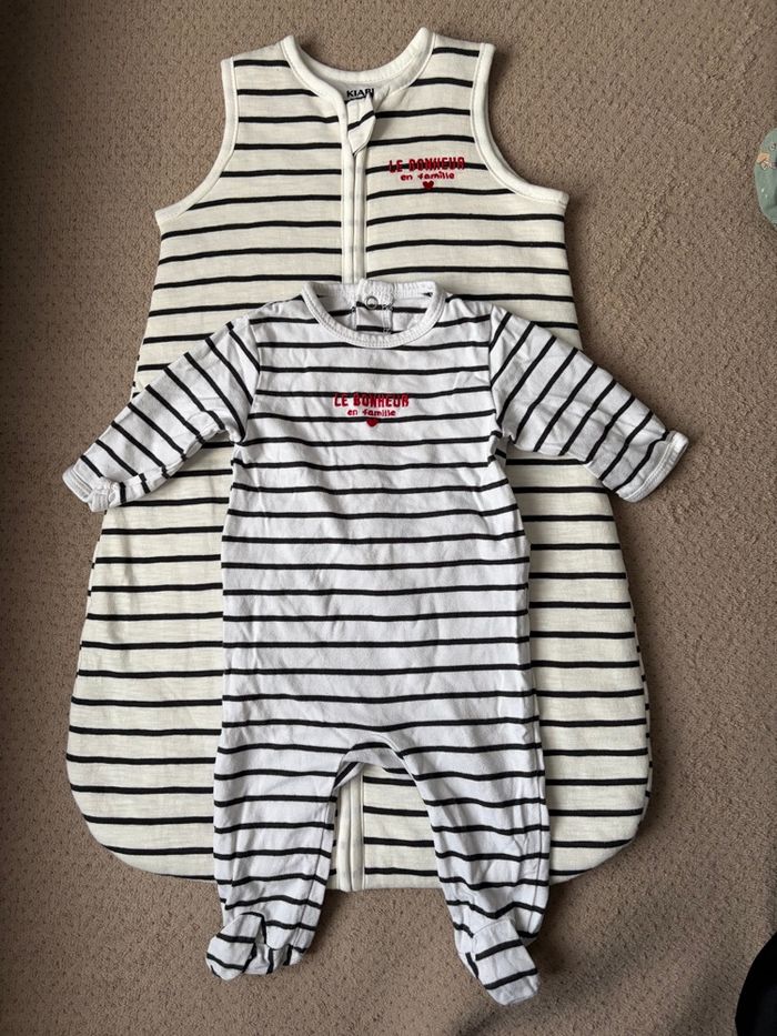 Gigouteuse à rayures noir et blanc 0-6 mois neuve jamais utilisée + body 3 mois Kiabi