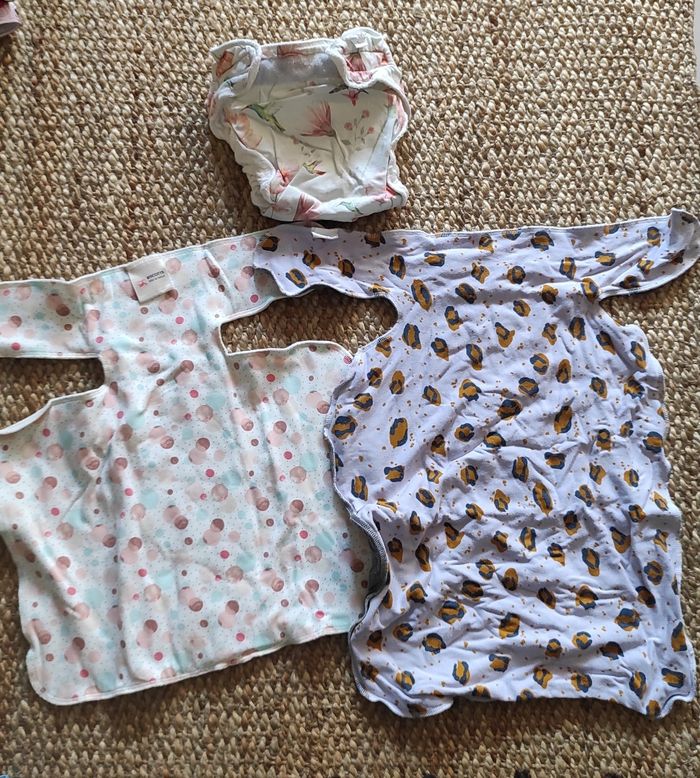 Lot de 3 couches : 1 couche preplate biscotte taille M 1 couche preplate lilou créas pas de taille mais idem biscotte mais beaucoup plus élastique donc bien plus adaptable 1 couche moulée lilou créas taille L Très peu utilisées, acheté pour testé et nous avons finalement opté pour un autre système.