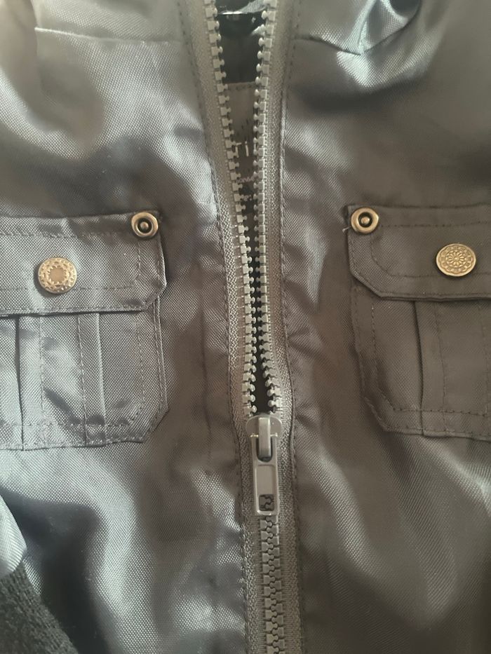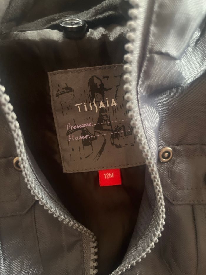 Joli petit blouson avec la capuche amovible. Parfait pour le printemps il est en très bon état. La fermeture fonctionne parfaitement Taille 12 mois Marque tissaia Couleur gris foncé et capuche noir