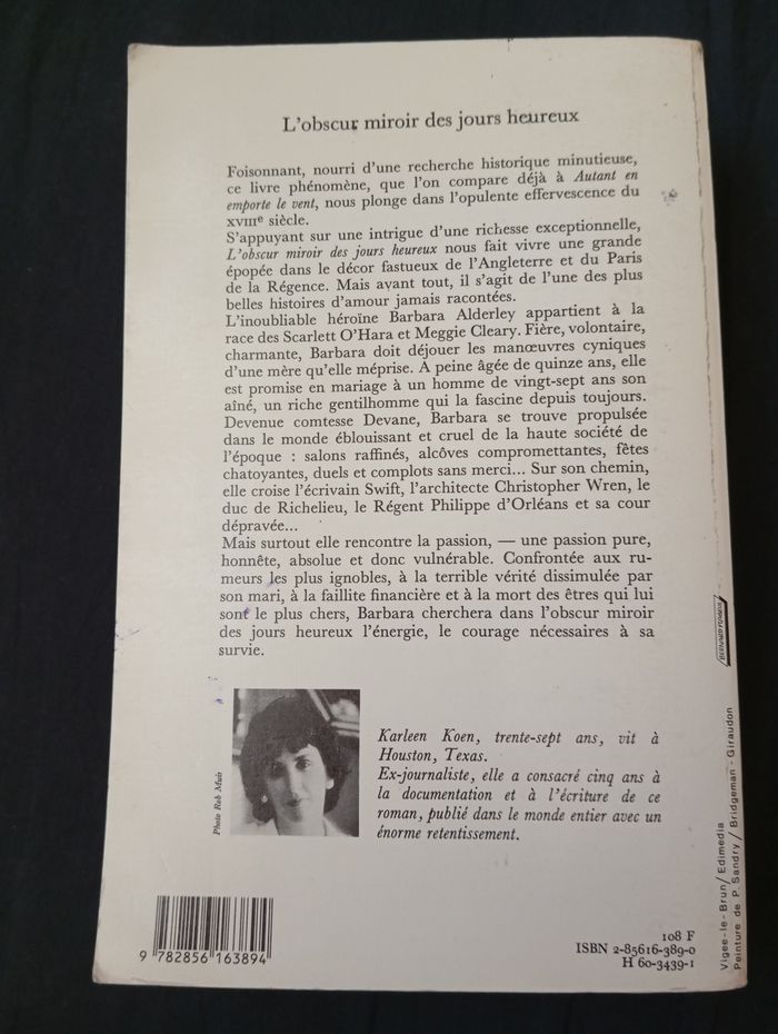 Je vends ce roman "L'obscur miroir des jours heureux" de Karleen Koen. - Titre : L'obscur miroir des jours heureux - Auteur : Karleen Koen - Genre : Roman - Éditeur : Presses de la Renaissance Bon état N'hésitez pas à me contacter pour plus d'informations !