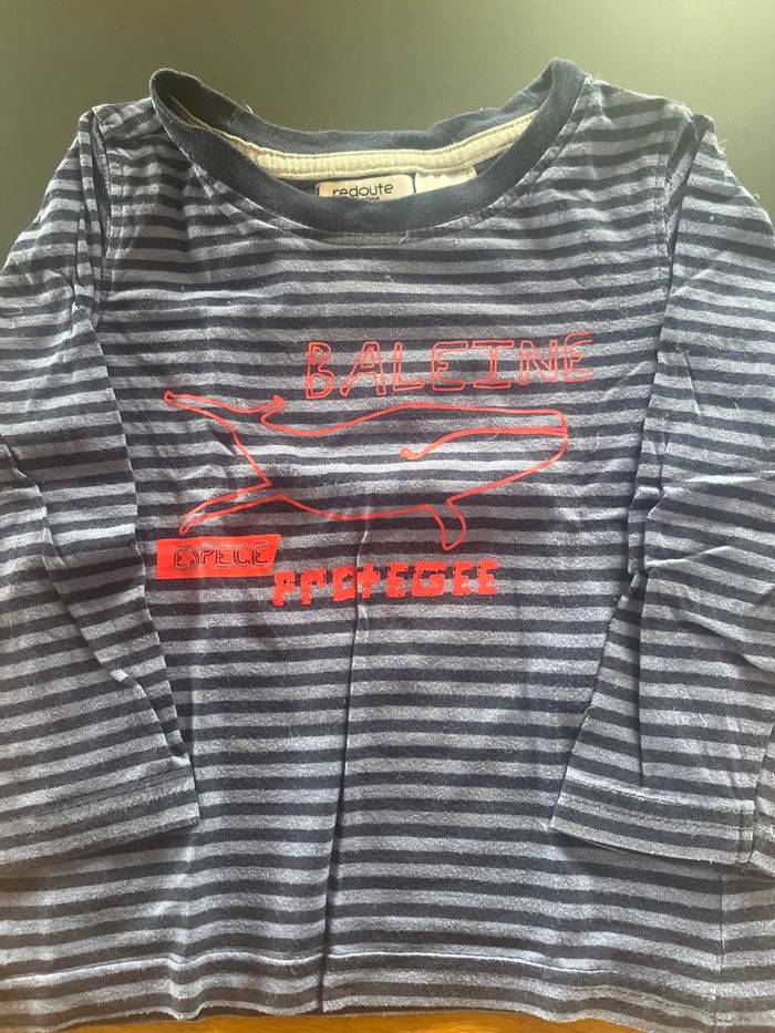 2 tee-shirts manches longues 18 mois Le rouge a une petite tache au bout de la manche Marque kimbaloo et la redoute En bon état