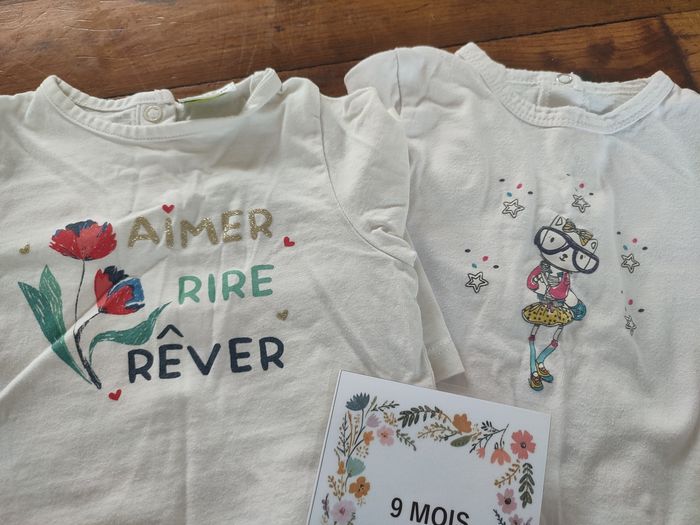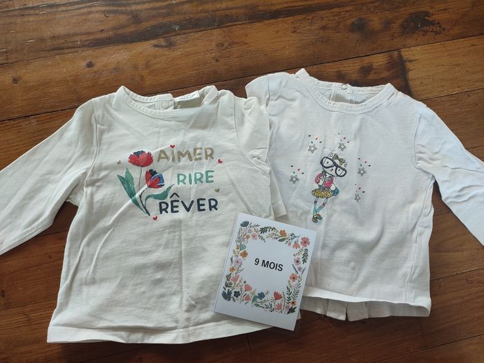 Lot de t-shirt manches longues Coton fin Tape à l'oeil 9 mois Fermeture bouton arrière