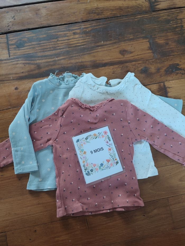 Lot de 3 t-shirt manches longues côtelé Kiabi 9 mois