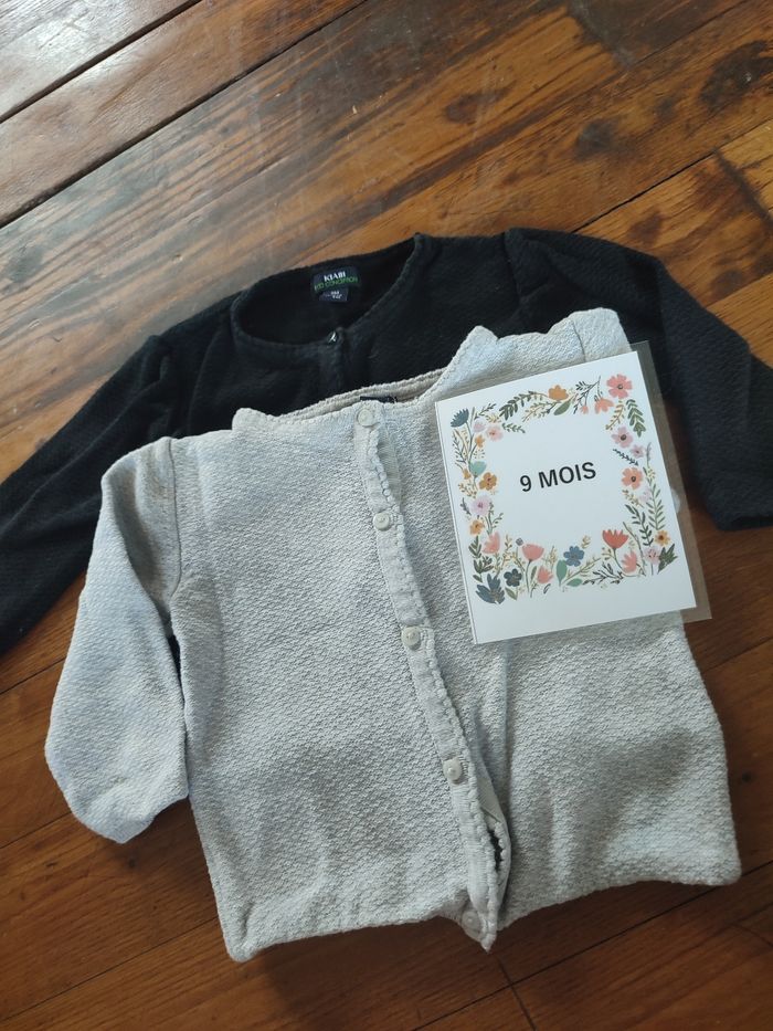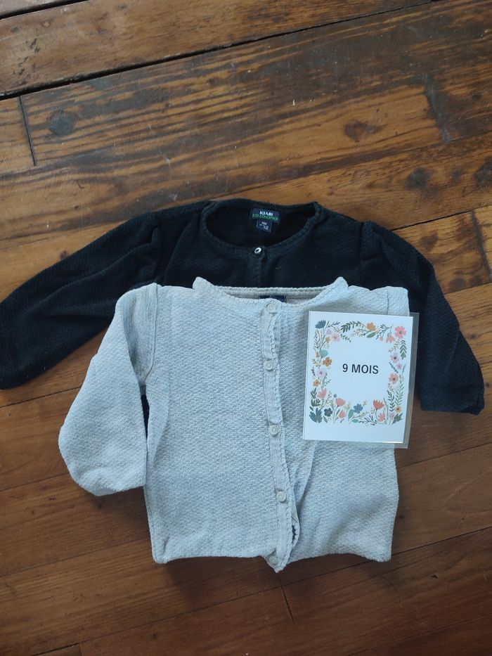 Lot de 2 gilets Kiabi 9 mois Gris et noir Maille fine