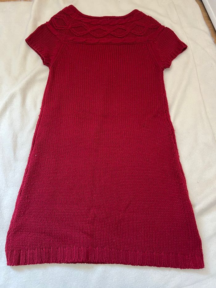 vends ce pull long manches courtes Matière type laine col rond taille S couleur rouge bordeaux demi largeur aux aisselles 38 cm longueur 83 cm 4 euros Mes autres annonces de vêtement pour femme De XS à S #lma42femmeS #lma42femmeXS