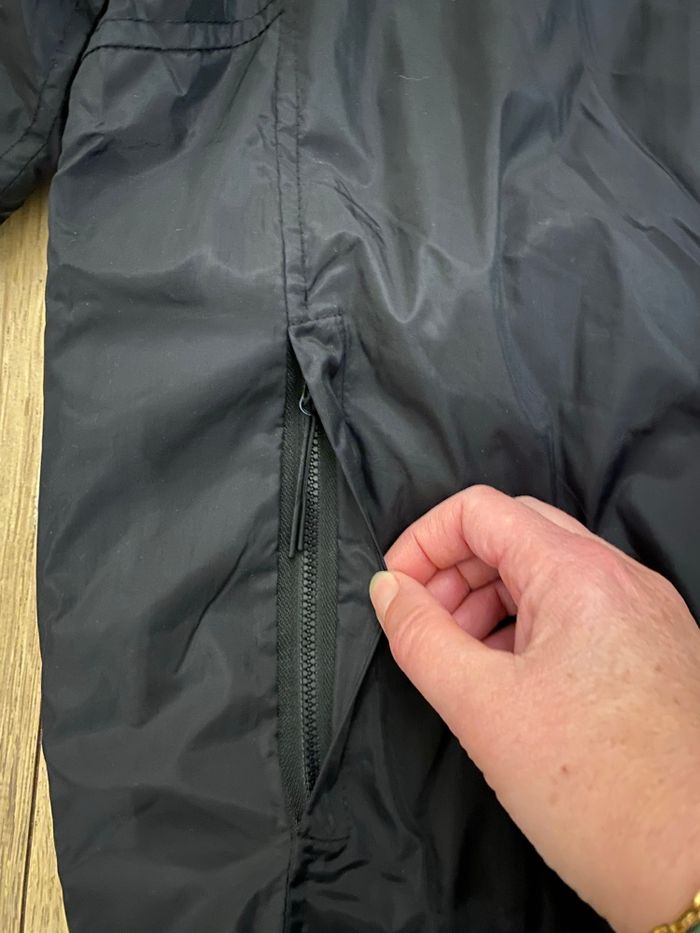 Veste coupe-vent matelassé à capuche avec lunettes C.P. Company noire taille M Coupe-vent imperméable matelassé style doudoune fine. Fermeture par zip 2 poches sur les côtés Largeur entre les aisselles : 57 cm Longueur : 65 cm