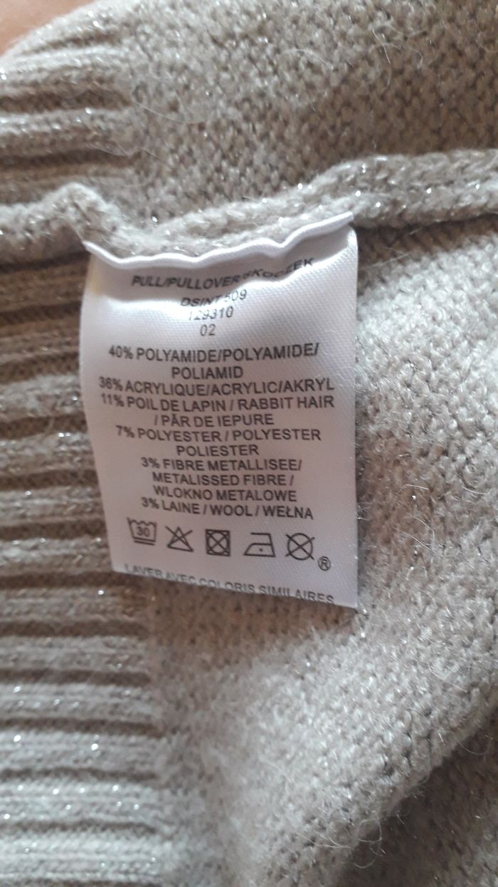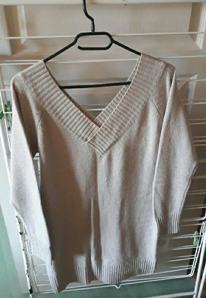 Robe/pull grand col en V longueur 85 cm Largeur épaule à épaule 40 cm Beige pailleté