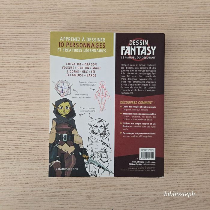 Le manuel du débutant Par 3dtotal Publishing Très bon état N'hésitez pas à aller sur mon profil pour d'autres livres Plongez dans le monde enchanté des dragons, des sorciers et des guerriers avec ce manuel d'initiation à la création de personnages fantasy. Découvrez les conseils de chara designers expérimentés et créez vos personnages magiques et vos créatures mythiques à l'aide de tutoriels simples, de conseils éclairants et de bases théoriques élémentaires. Découvrez comment: Créer des images abouties depuis l'esquisse jusqu'aux finitions Maîtriser des notions essentielles comme l'anatomie, les poses, les couleurs et la recherche de détails Utiliser un simple crayon et un feutre pour dessiner dans des styles variés Développer vos propres créations avec des modèles téléchargeables Un superbe manuel pour débuter le dessin fantasy, concocté par des pros du genre. Les bases du chara design sont suivies de 10 créations étape par étape de