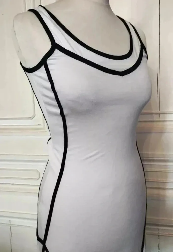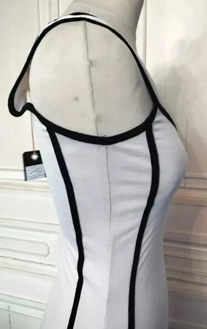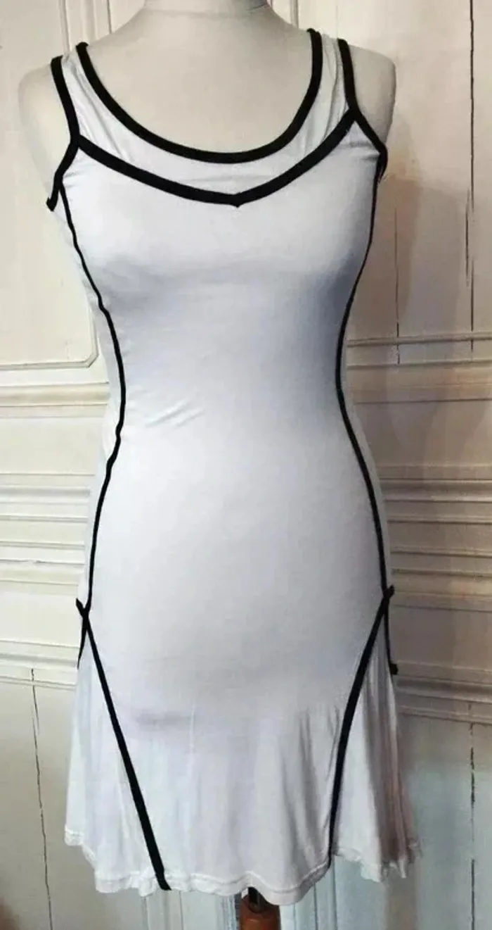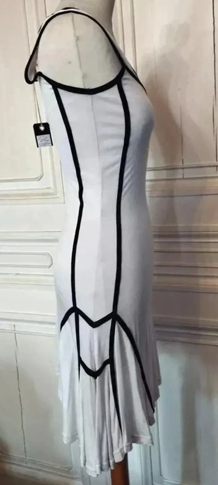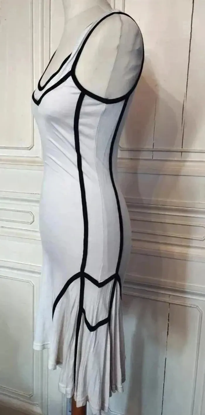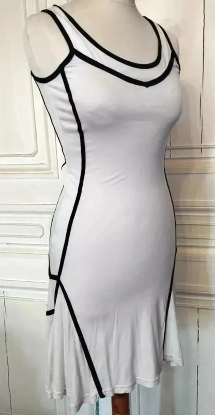 ICHI ROBE RAINY DAY T M CORRESPOND A UN 36/38 VOIR MESURES AU BAS MODELE TRES ORIGINAL ET SCULPTURAL TISSU ULTRA FLUIDE FRAIS ET CONFORTABLE BIEN EXTENSIBLE PROCHE MATIERES AMERICAN VINTAGE COLORIS SABLE FONDANT TRES DOUX DECOLLETé ANSE OUVERTURE 26 CM PROFONDEUR 15 CM GANSé DE NOIR CONTRASTANT HAUT DU BUSTE GALON NOIR AVEC POINTE DESCENDANTE AU CENTRE EMMANCHURES NOIRES 23 CM EGALEMMENT BORDEES DE NOIR DECOUPES GRAPHIQUES ET AFFINANTES SUR LES COTés DESSINANT UN RECTANGLE AVEC POINTES DE SOUS LE BRAS AUX HANCHES SUR LES HANCHES GRANDS PANS TRIANGULAIRES DE CHAQUE COTé SOULIGNés DE BANDES NOIRES DESSINANT COMME DES EPAULETTES DE CAPITAINE AVEC POINTES LES COTéS ASYMETRIQUES SONT PLUS LONGS D ENVIRON 11 CM ET CREENT UNE AMPLEUR TOTALE DE 320 CM RENDANT LA ROBE TRES DANSANTE BASE TRES ARRONDIE DECOUPEE EN COROLLE NEUVE AVEC ETIQUETTE POITRINE 47 CM TAILLE 39 CM HANCHES 50 CM BAS EN COROLLE ENV 160 CM LONGUEUR 89 CM SUR LE DEVANT ET 100 CM SUR LES COTéS