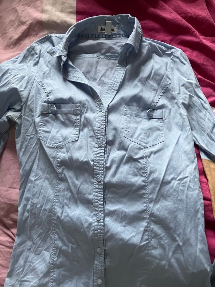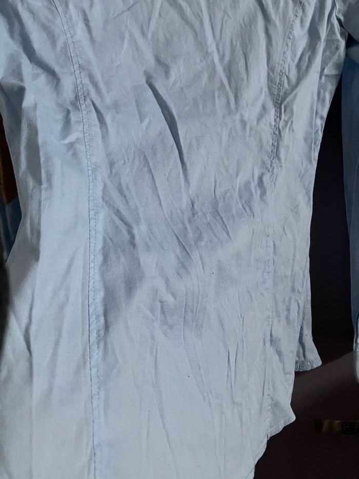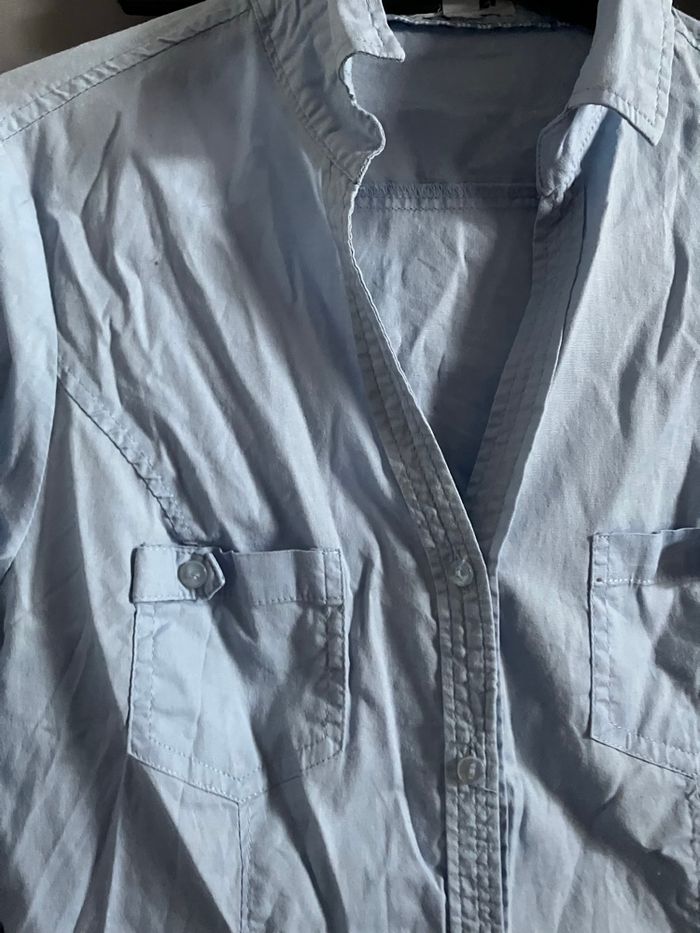 Jolie chemise bleue très clair avec empiècement aux coudes Taille M mais taille petit