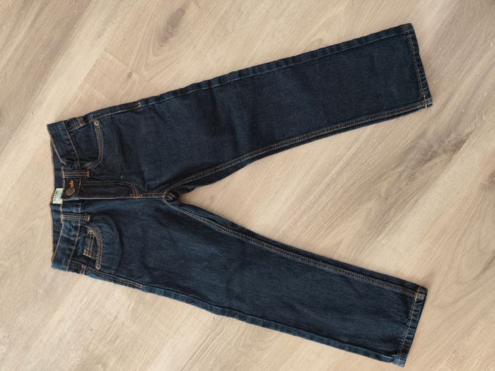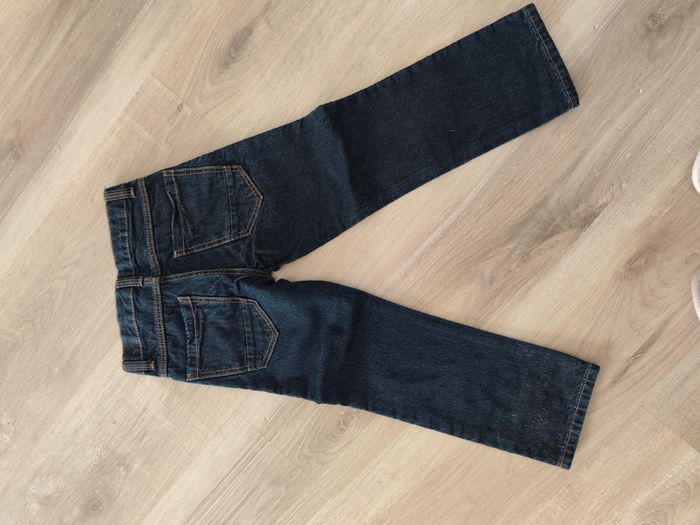 Je vends ce jean de la marque KIABI pour enfant, de couleur bleue foncée. - Type de produit : pantalon jean - Marque : Kiabi - éco conception - Taille : 5 ans - Couleur : bleu foncé - Caractéristique : ouverture par bouton pression + fermeture éclair.