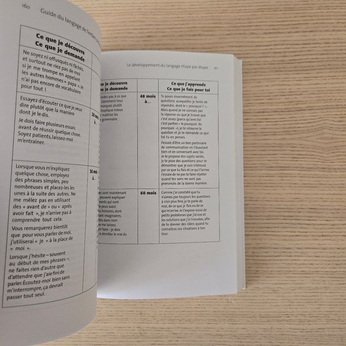Par Sylvie Desmarais Très bon état N'hésitez pas à aller sur mon profil pour d'autres livres Ce guide vous fera connaître le fabuleux chemin que parcourt un enfant qui apprend à parler. Il s'adresse à vous si : vous êtes parent, éducateur ou intervenant; vous souhaitez connaître les phases du développement du langage et de la communication; vous voulez stimuler votre enfant dans l'apprentissage de la parole; vous vous inquiétez au sujet de sa capacité à parler ou comprendre ; vous désirez le guider en français alors que ce n'est pas votre langue maternelle. Fondé sur de nombreux travaux de recherche, ce livre offre des outils simples et faciles à consulter. Vous y trouverez des tableaux pour repérer les phases du développement du langage, des méthodes pour voir si un enfant risque de présenter un retard ou un trouble, des suggestions pour stimuler la parole ainsi que diverses activités à inclure dans la vie quotidienne. Conçu à partir de questions fréquemment posées par les parents et les éducateurs, cet ouvrage prend appui sur l'expérience de plus de vingt-cinq ans de l'auteure auprès des jeunes.