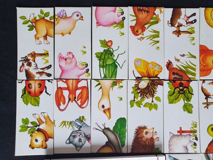 Dominos Puzzle Les animaux Un jeu éducatif Nathan de 1979 Vintage De 4 à 8 ans 2 à 4 joueurs 28 pièces + mode d'emploi Vendu sans boite Poids : 120 grammes Très bon état a part de légères traces noires au dos dû à l'utilisation (voir photo)
