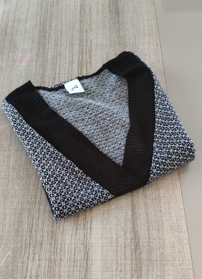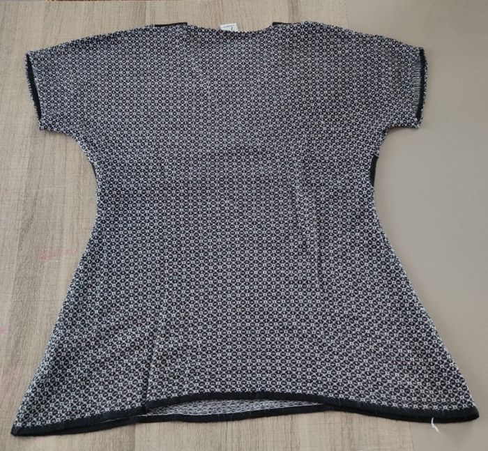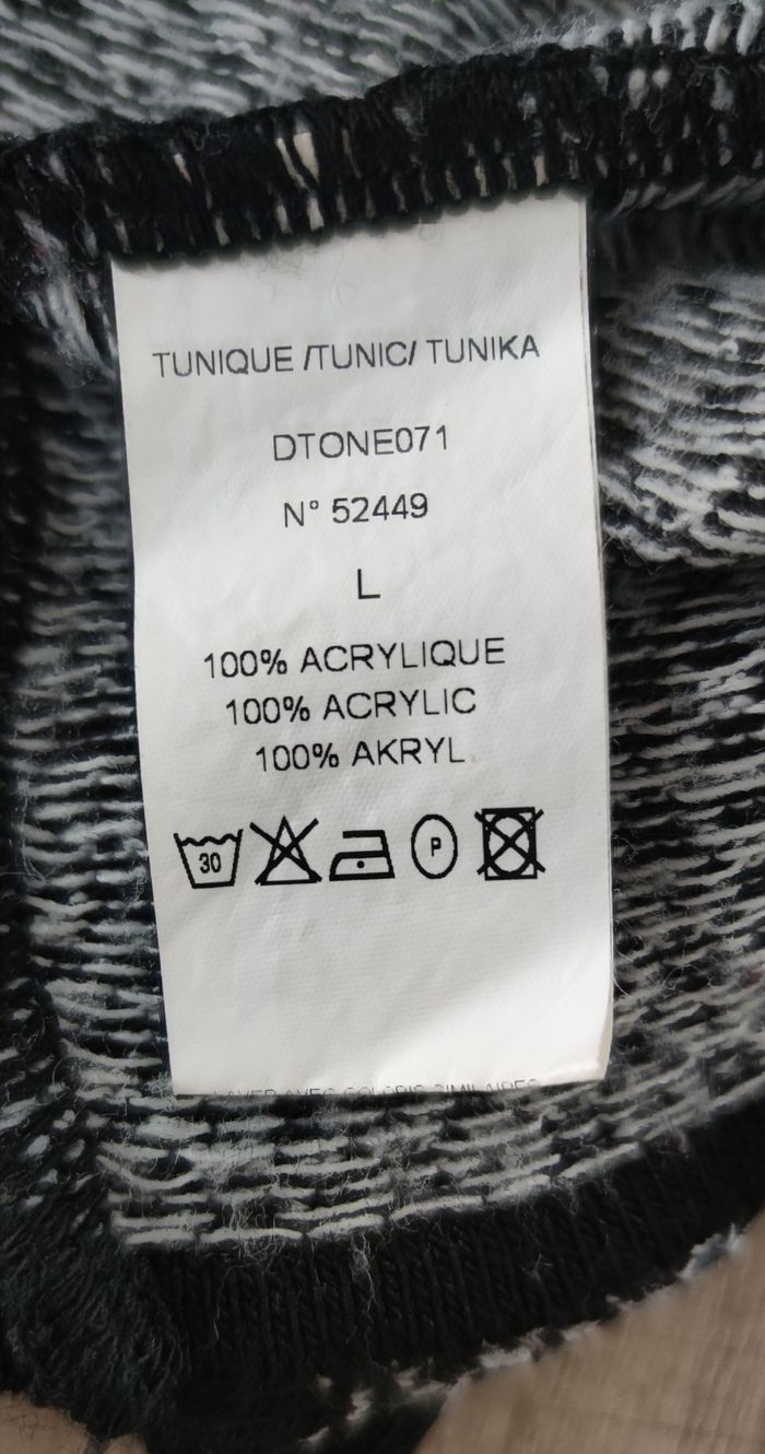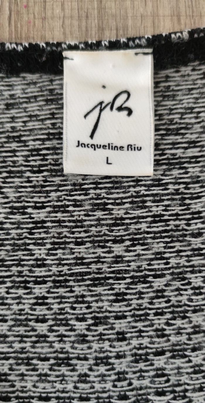Tunique de couleur noir et blanc, de la marque Jacqueline Riu et de taille L. Tunique à manche courtes, légère et agréable à porter, en acrylique et en bon état pour femme. Expédition dès le lendemain. Tour de poitrine 98 cm Tour de taille 85 cm Largeur d'épaule 52 cm Longueur totale 76cm Prix 6€