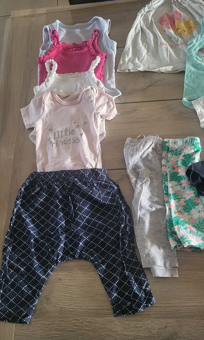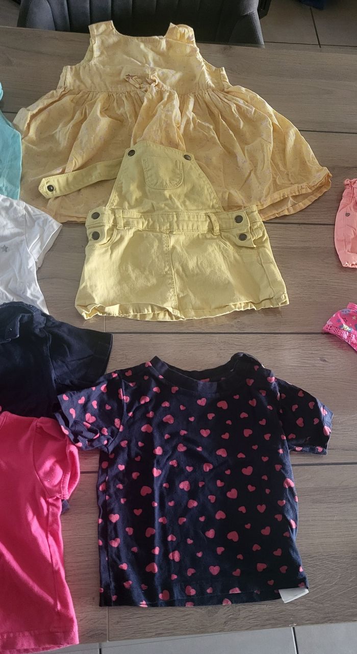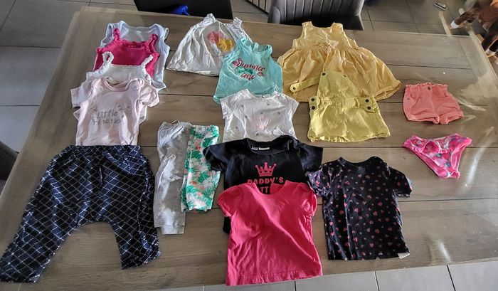 En trés bon état, de différentes marques ( bpc , tape a l oeil,kiabi ...) lot 12 mois été fille qui comprend : 4 bodies léger , 1 pantalon léger, 2 legging , 2 débardeurs , 4 t-shirt , 1 belle robe jaune, 1 salopette jupe, 1 short et un bas de maillot de bain. N'hésitez pas a regarder mon dressing, une réduction peux être appliquée pour les achats en lot , Envoie rapide et soignée 😊☀️