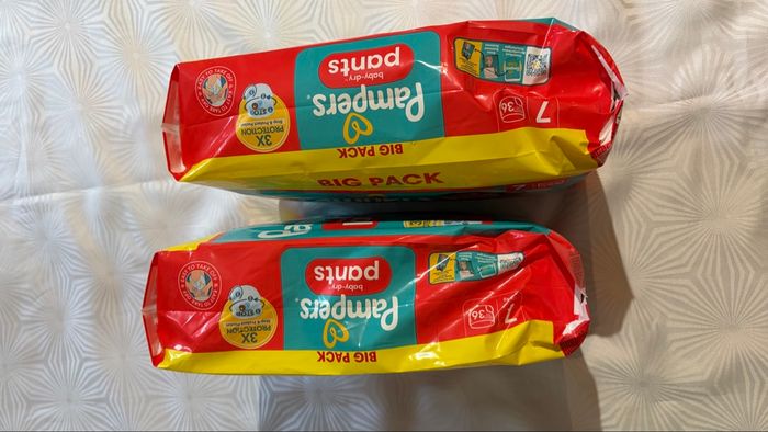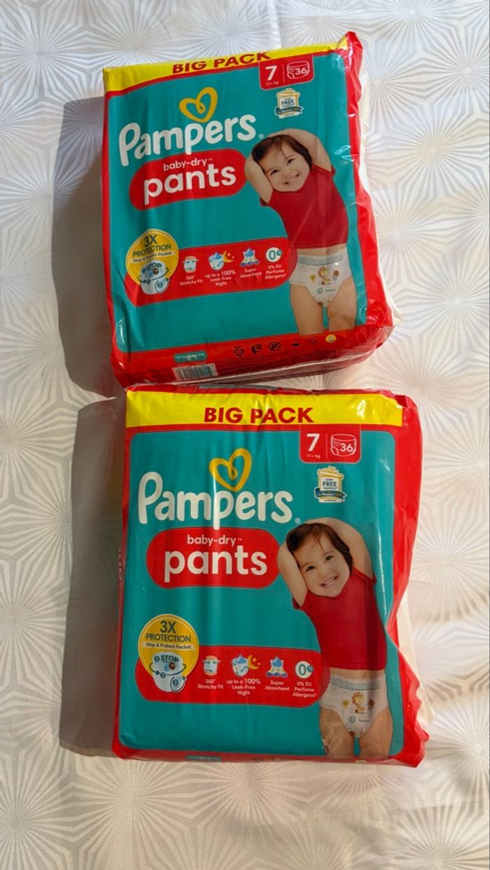👶 Lot de 115 couches 👶 👶 Pampers Pants 👶 Taille 7 ‼️ 2 paquets fermés de 36 couches donc 72 couches et 43 couches ouvertes