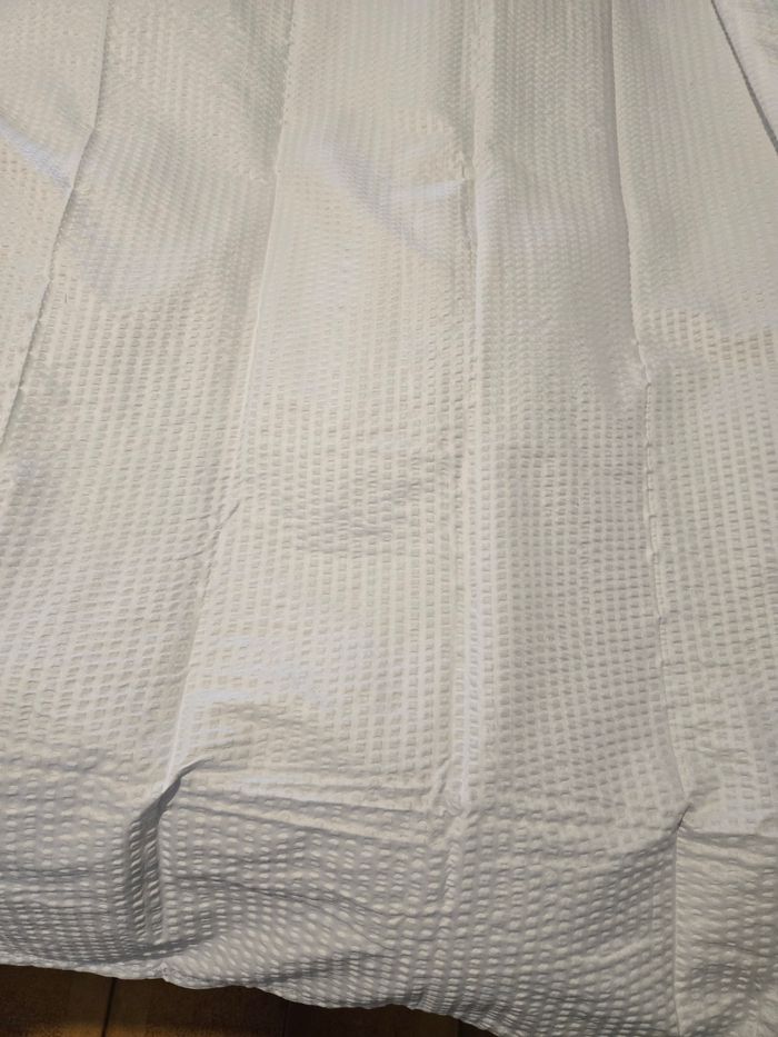Je vends ce rideau de douche blanc de dimensions 175x190 cm. - Type de produit : Rideau de douche - Dimensions : 175 x 190 cm - Matière : Polyester, Polyester/Coton - Couleur : Blanc Etat neuf N'hésitez pas à me contacter pour plus d'informations.