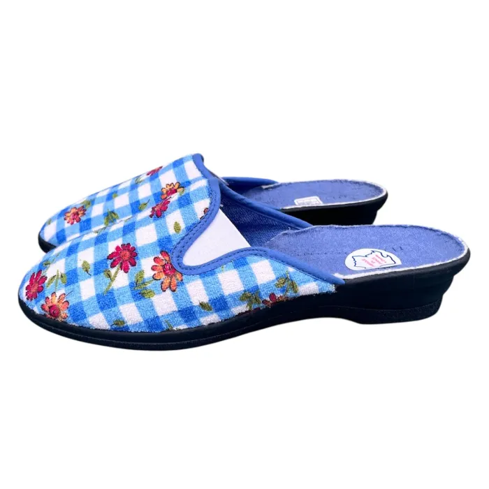 Chaussons à carreaux bleu motif floral pour femmes Taille 41 Neuf - photo numéro 2