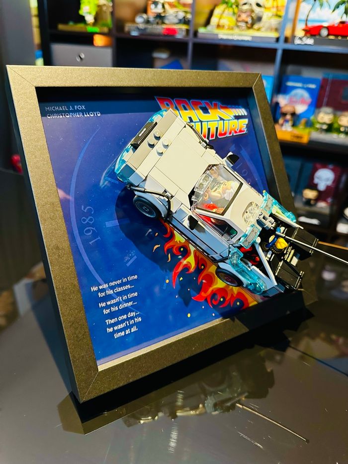 Cadre Back to the Future 20×20 cm - compatible LEGO DeLorean