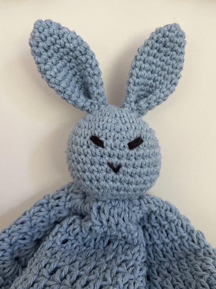 doudou lapin bleu au crochet fait main - photo numéro 2