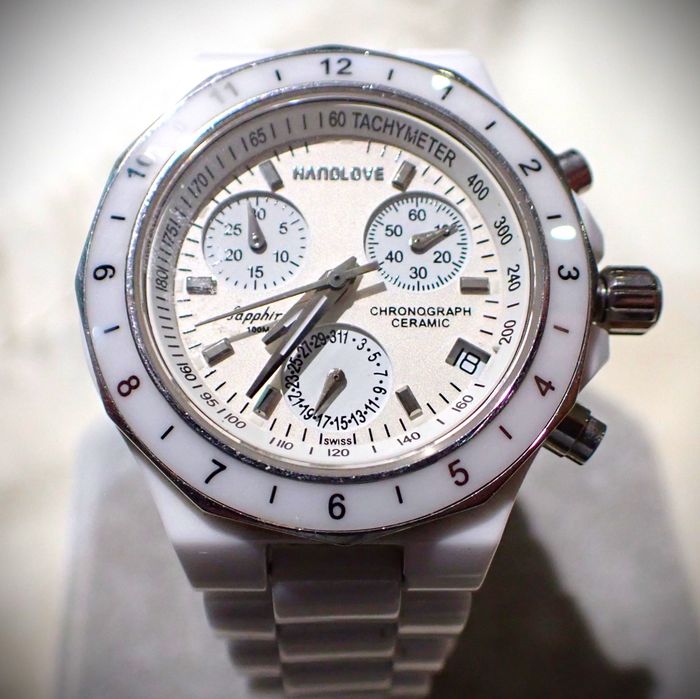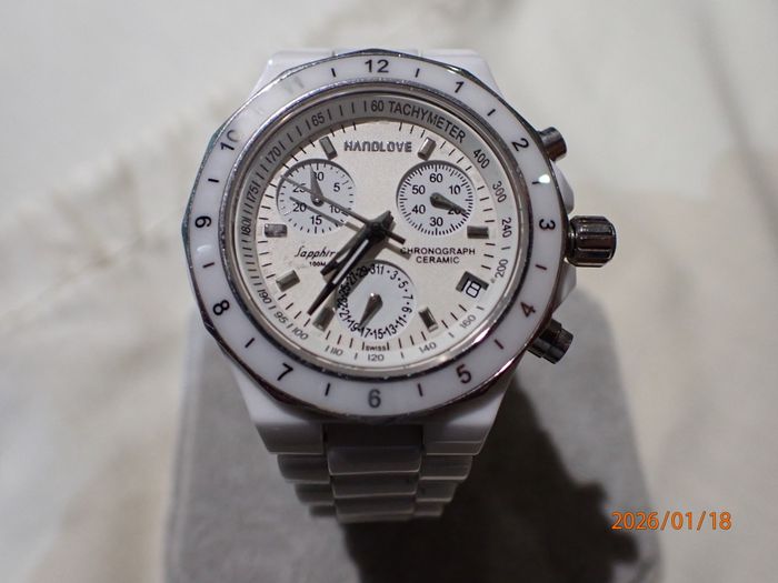 MONTRE HANDLOVE SUISSE EN CERAPIQUE,MULTIFONCTIONS CHRONOMETRE ,GUICHET DATE  ET VERRE SAPHIR  - photo numéro 1
