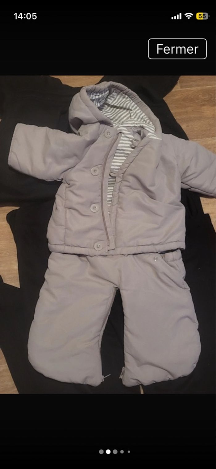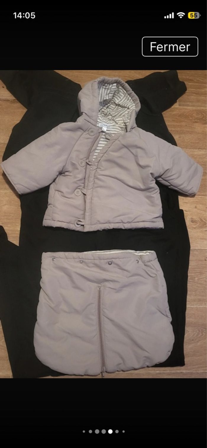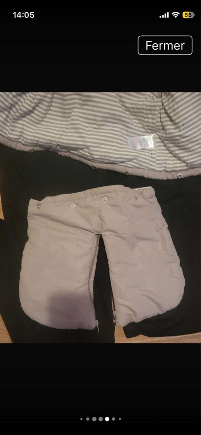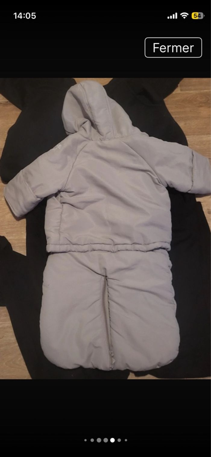 Combinaison pilote 4 en 1 de couleurs crème et marque ver baudet.le haut se défait en menteau.et le bas se met en plies lier ou sépare par fermeture éclair. Laissez passer les accroche de la poussette.envoie rapide si intéressé