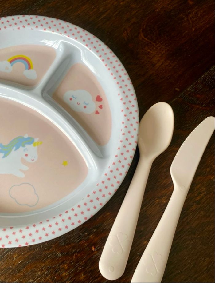 Ensemble composé d’une assiette cuillère et couteau en plastique