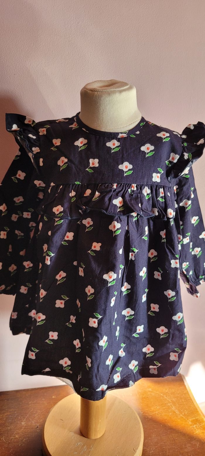 Robe manches longues Bleu marine fleuries 12 - 18 mois 80 cm Watch Me Grow Très bon état