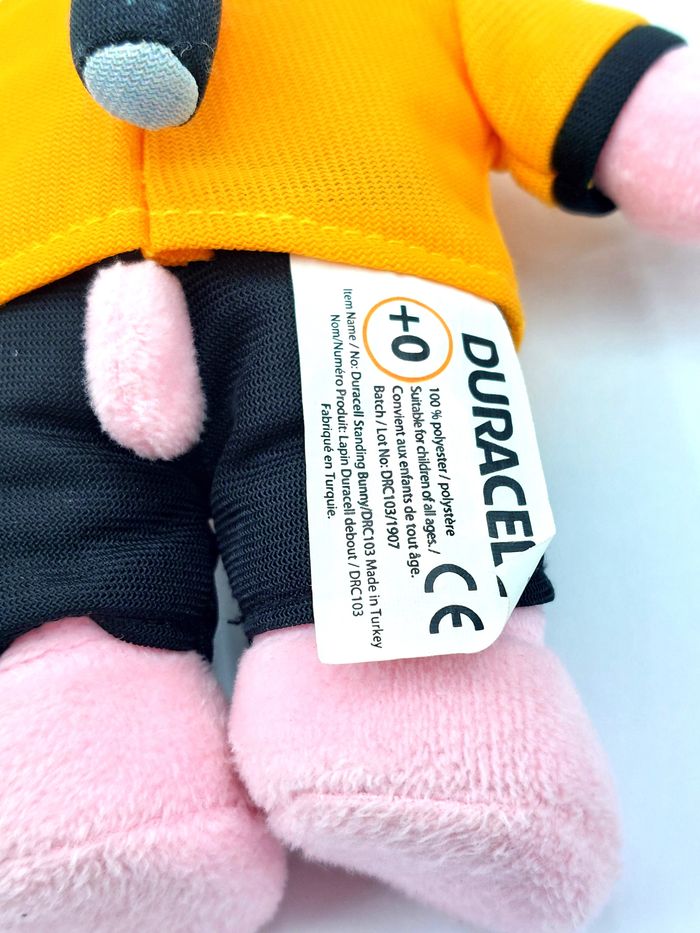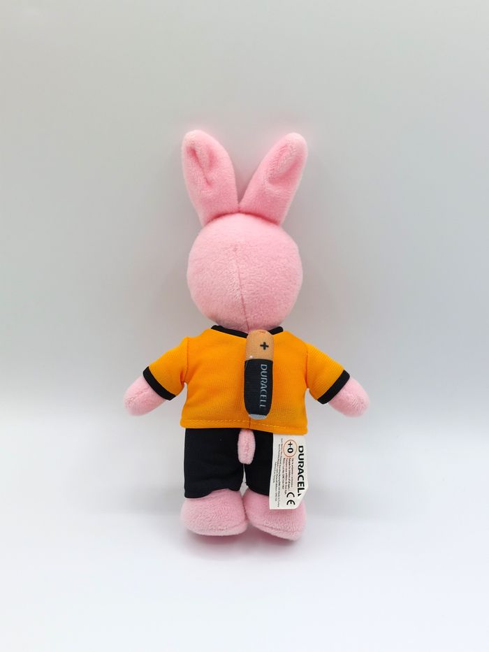 Petite peluche doudou lapin rose DURACELL 23 cm tee-shirt jaune pile au dos collector