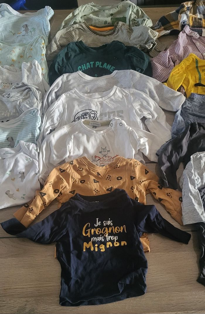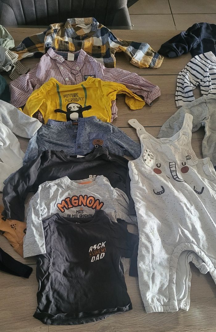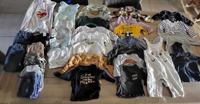 Gros lot 9 mois garçon en trés bon état , de différentes marques : kiabi , tape à l oeil , orchestra ... Ce lot comprend 1 pyjama 1 piéce , 2 jean et 5 joggings , 6 bodies , 13 tshirt manche longye et 2 belle chemise , 1 salopette , 3 pull ainsi qu'une veste N'hésitez pas à regarder mon dressing, une réduction peux être appliquée pour les achats en lot, Envoie rapide et soignée 😊☀️