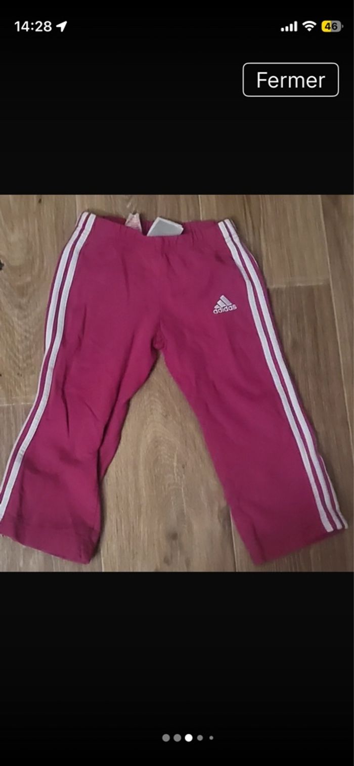 1 survêtement Adidas fille de couleur.plus 1 bas rose fushia .aucun trou ni tache car porter 1 fois .envoi rapide si intéressé