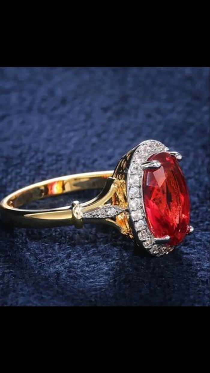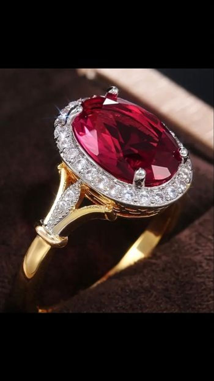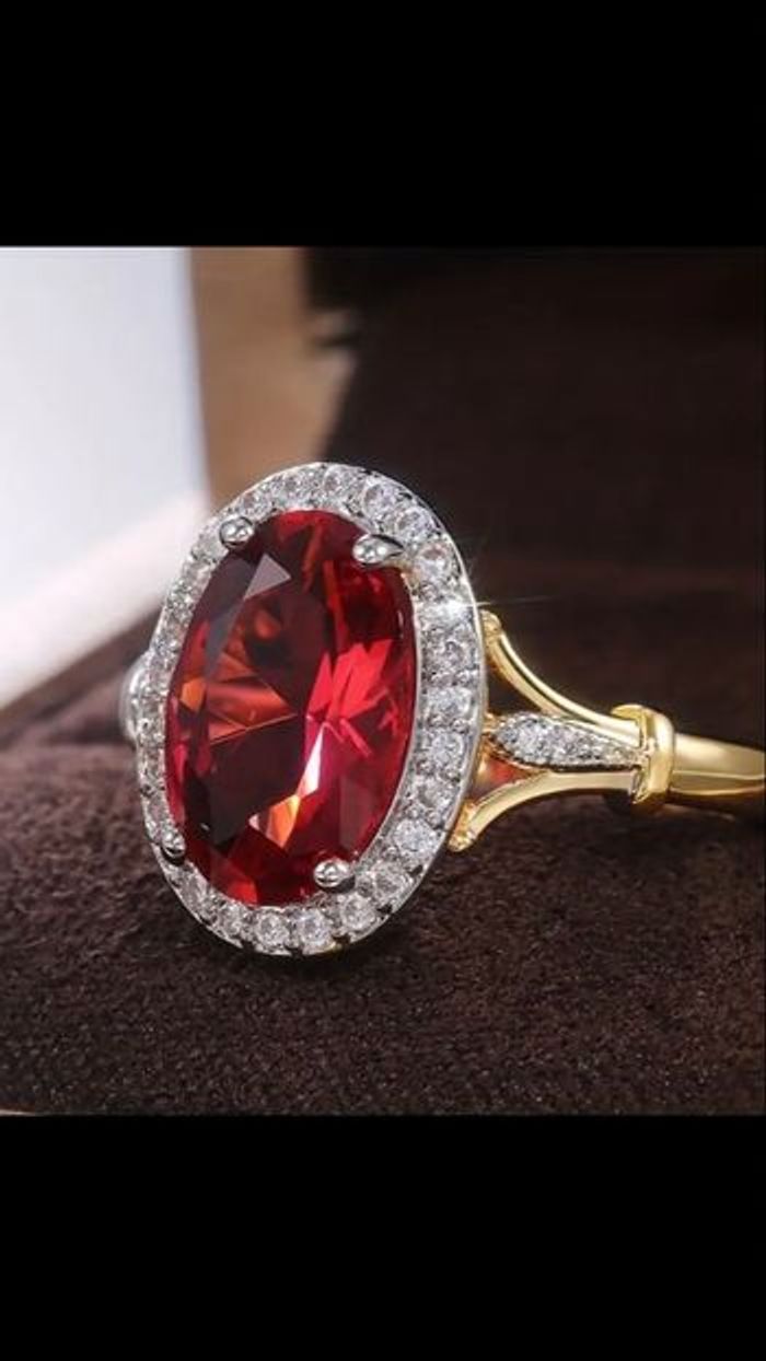 Bague ovale Pierre rouge zircon synthétique acier inoxydable taille 54 état très bon état